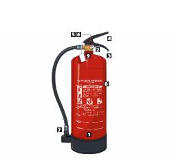 Las partes de un extintor portátil son: