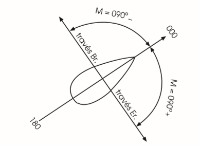 Las marcaciones semicirculares se miden desde la proa hacia popa por ambas bandas e irán de 0º a 180º, siendo las marcaciones de estribor positivas y las de babor negativas.